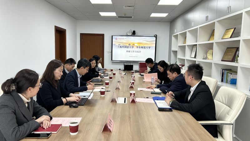 会上,朱承院长首先对上海外国语大学调研团的到来表示热烈欢迎,并简要回顾了两校在历史合作中取得的成果。随后,双方围绕有组织科研、高校智库平台建设、科研成果转化、科研项目管理、青年人才培养等有关内容展开深入交流探讨。双方均表示,上海外国语大学与华东师范大学有着长期合作的历史,尤其在语言文化与国际研究领域互动频繁,希望以此为契机,深化双方交流与合作,不仅在科研管理层面互学互鉴,更在区域国别研究领域加强合作,强化联合协作攻关,共同为国家的哲学社会科学事业高质量发展贡献力量。