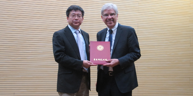 10月29日下午,国际著名经济学家、纽约大学斯坦恩商学院教授保罗•罗默先生受聘我校“荣誉教授”,并做客大夏讲坛。华东师范大学校长陈群、社科处处长顾红亮以及400余名师生参加了受聘仪式并聆听了报告。荣誉教授授聘仪式由金融与统计学院党委书记岳华主持。