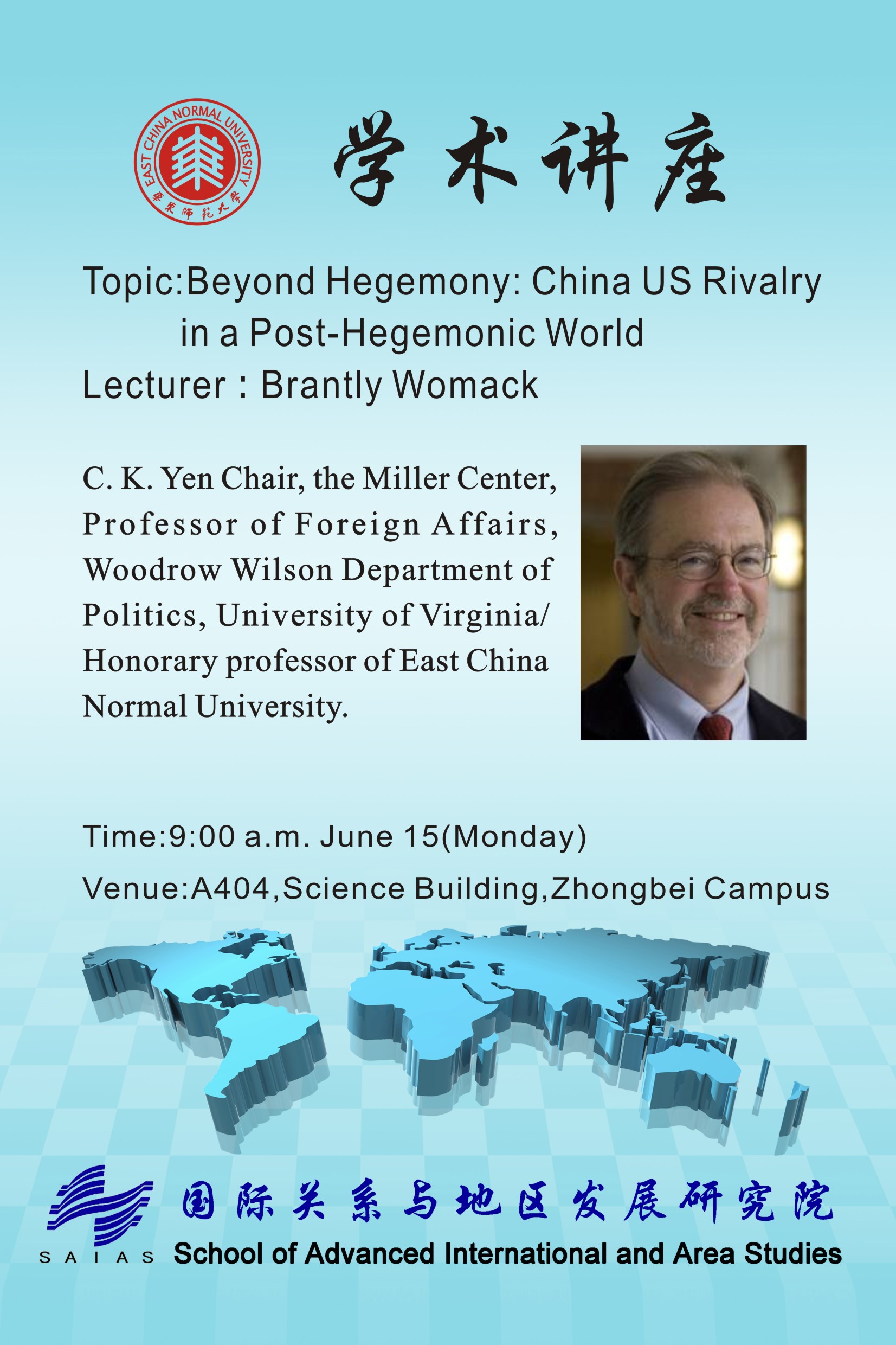 6月15日 Brantly Womack: Beyond Hegemony: China US Rivalry in a Post-Hegemonic World